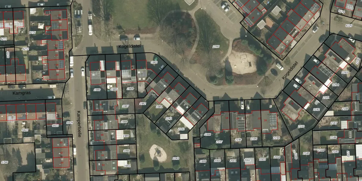Het perceel waarop Kogeldistel 12 staat heeft een oppervlakte van 245 m². Dit is een middelgroot perceel. De perceeloppervlakte wordt geregistreerd door het Kadaster. Gedetailleerde informatie over de maten van dit perceel kunt u vinden in het rapport Kadastrale kaart met maatvoering van Kogeldistel 12.