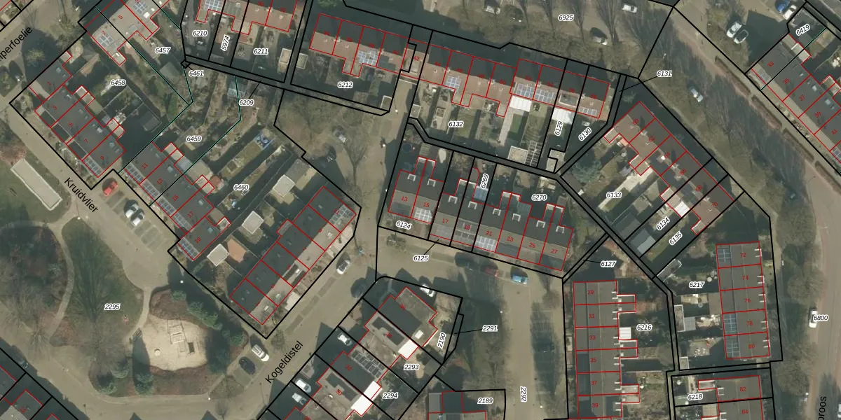 Kogeldistel 15 is gelegen op kadastraal perceel VRY00T6124. Deze kadastrale aanduiding is uniek en wordt gebruikt door het Kadaster om eigendomsrechten en andere zakelijke rechten vast te leggen. Het perceel maakt onderdeel uit van de kadastrale gemeente Venray.