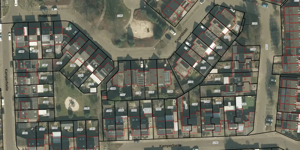 Kogeldistel 22 is gelegen op kadastraal perceel VRY00T2195. Deze kadastrale aanduiding is uniek en wordt gebruikt door het Kadaster om eigendomsrechten en andere zakelijke rechten vast te leggen. Het perceel maakt onderdeel uit van de kadastrale gemeente Venray.