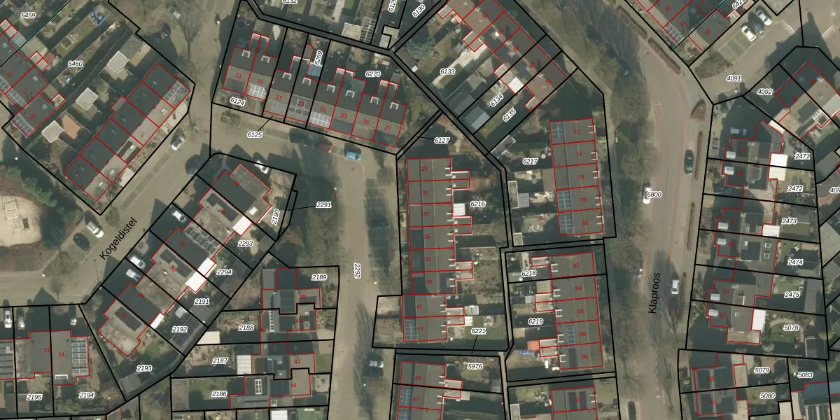 Kogeldistel 33 is gelegen op kadastraal perceel VRY00T6216. Deze kadastrale aanduiding is uniek en wordt gebruikt door het Kadaster om eigendomsrechten en andere zakelijke rechten vast te leggen. Het perceel maakt onderdeel uit van de kadastrale gemeente Venray.