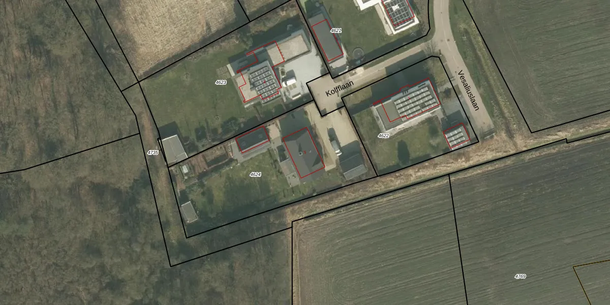 Gebruik de zoekbalk of klik op een perceel voor informatie over de adressen binnen dit perceel.