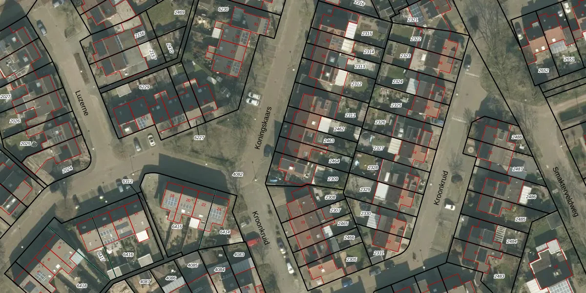 Gebruik de zoekbalk of klik op een perceel voor informatie over de adressen binnen dit perceel.