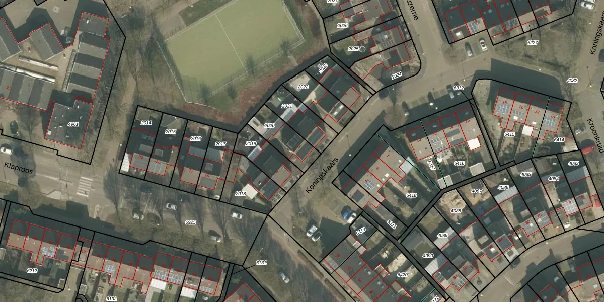Gebruik de zoekbalk of klik op een perceel voor informatie over de adressen binnen dit perceel.