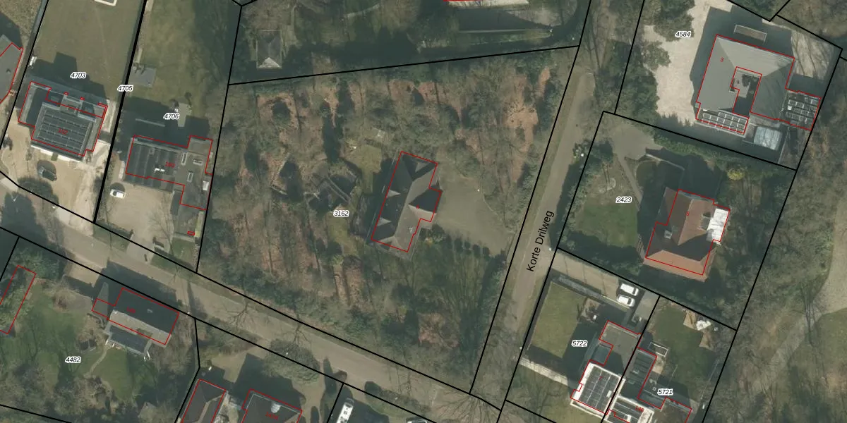 Het perceel waarop Korte Drilweg 6 staat heeft een oppervlakte van 4850 m². Dit is een zeer groot perceel. De perceeloppervlakte wordt geregistreerd door het Kadaster. Gedetailleerde informatie over de maten van dit perceel kunt u vinden in het rapport Kadastrale kaart met maatvoering van Korte Drilweg 6.