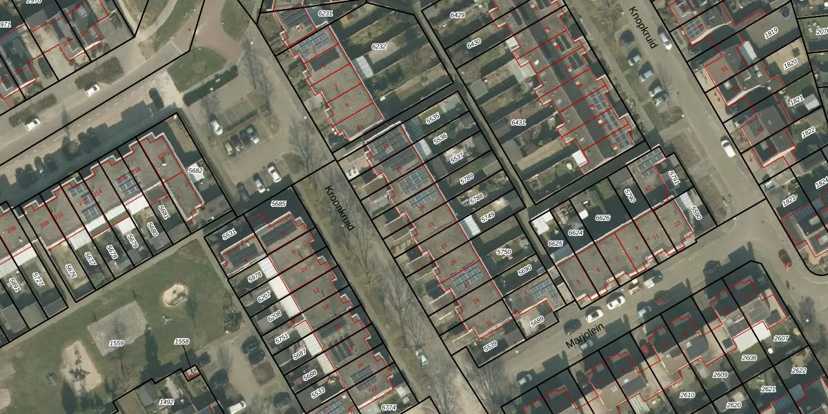 Het perceel waarop Kroonkruid 19 staat heeft een oppervlakte van 182 m². Dit is een middelgroot perceel. De perceeloppervlakte wordt geregistreerd door het Kadaster. Gedetailleerde informatie over de maten van dit perceel kunt u vinden in het rapport Kadastrale kaart met maatvoering van Kroonkruid 19.