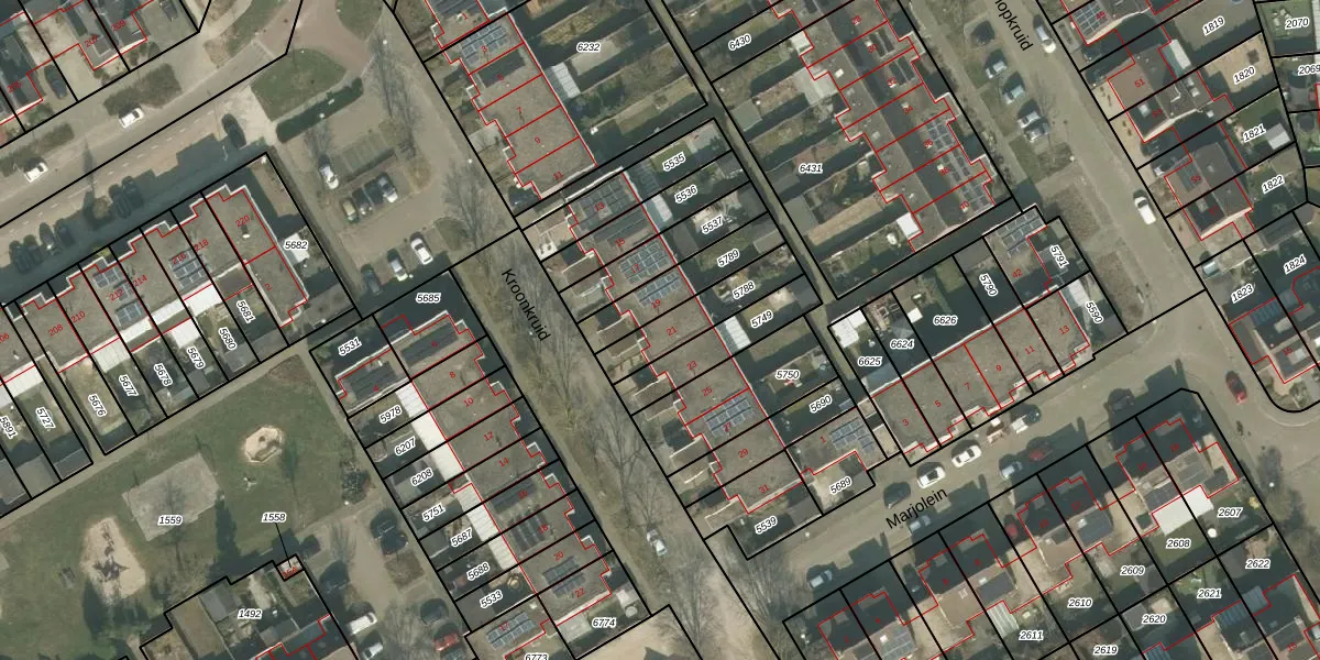 Het perceel waarop Kroonkruid 21 staat heeft een oppervlakte van 183 m². Dit is een middelgroot perceel. De perceeloppervlakte wordt geregistreerd door het Kadaster. Gedetailleerde informatie over de maten van dit perceel kunt u vinden in het rapport Kadastrale kaart met maatvoering van Kroonkruid 21.