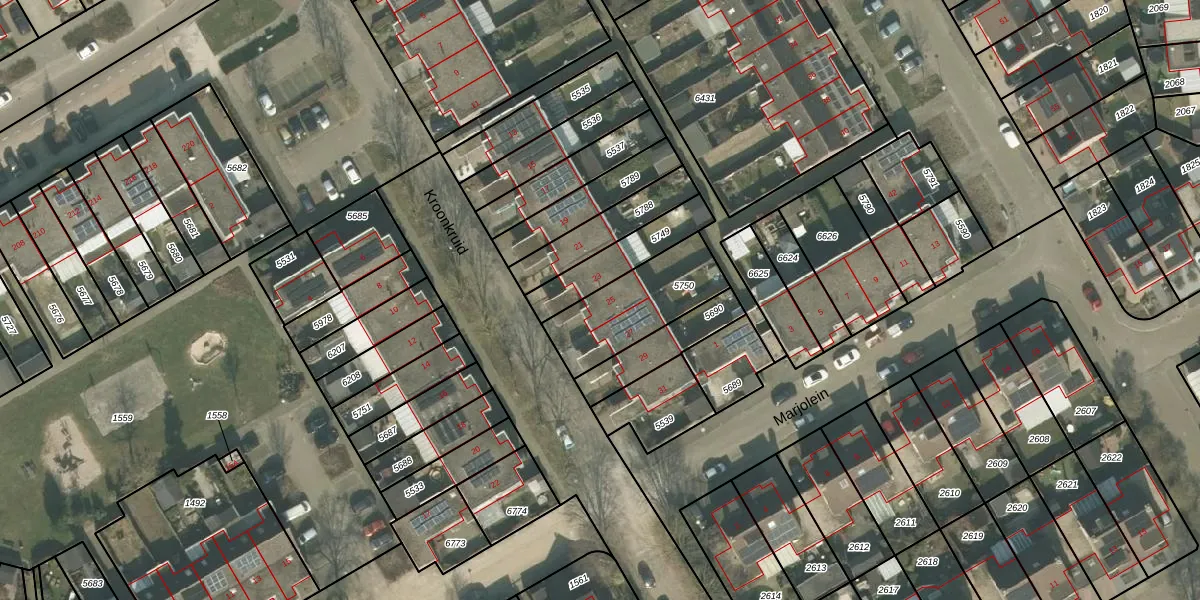 Het perceel waarop Kroonkruid 25 staat heeft een oppervlakte van 327 m². Dit is een groot perceel. De perceeloppervlakte wordt geregistreerd door het Kadaster. Gedetailleerde informatie over de maten van dit perceel kunt u vinden in het rapport Kadastrale kaart met maatvoering van Kroonkruid 25.