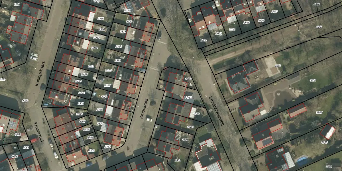 Gebruik de zoekbalk of klik op een perceel voor informatie over de adressen binnen dit perceel.
