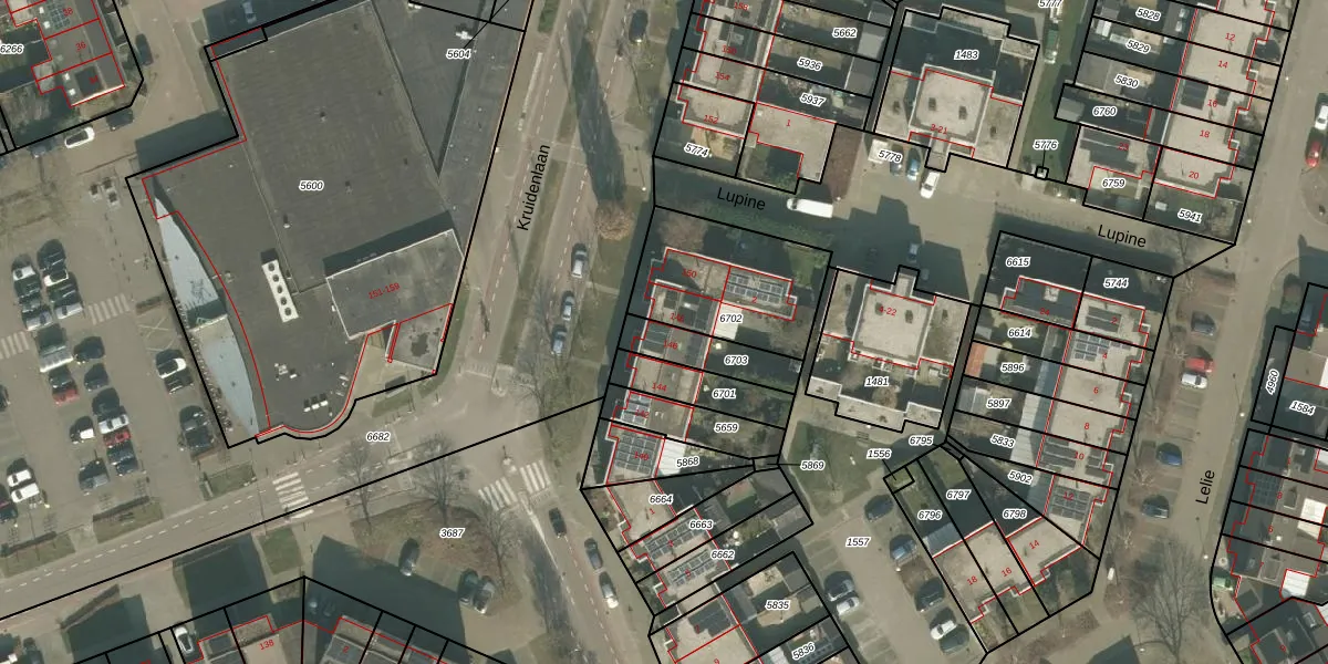 Kruidenlaan 146 is gelegen op kadastraal perceel VRY00T6703. Deze kadastrale aanduiding is uniek en wordt gebruikt door het Kadaster om eigendomsrechten en andere zakelijke rechten vast te leggen. Het perceel maakt onderdeel uit van de kadastrale gemeente Venray.