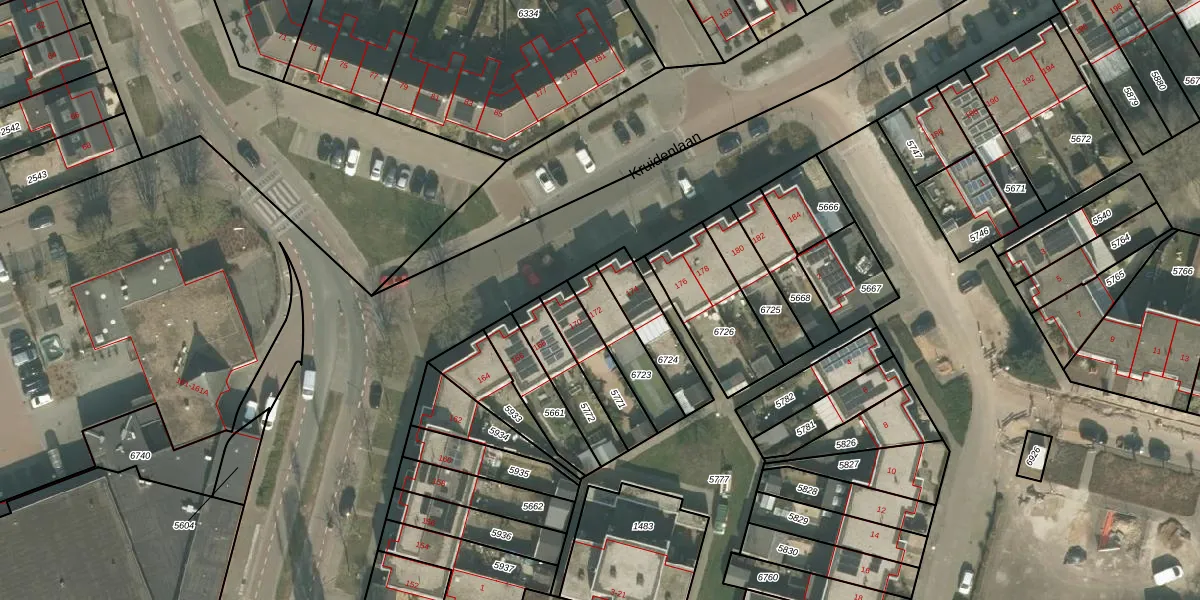 Kruidenlaan 172 is gelegen op kadastraal perceel VRY00T6723. Deze kadastrale aanduiding is uniek en wordt gebruikt door het Kadaster om eigendomsrechten en andere zakelijke rechten vast te leggen. Het perceel maakt onderdeel uit van de kadastrale gemeente Venray.