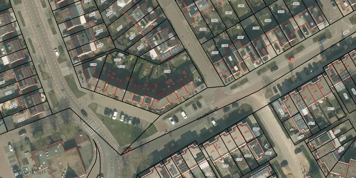 Kruidenlaan 179 is gelegen op kadastraal perceel VRY00T6334. Deze kadastrale aanduiding is uniek en wordt gebruikt door het Kadaster om eigendomsrechten en andere zakelijke rechten vast te leggen. Het perceel maakt onderdeel uit van de kadastrale gemeente Venray.