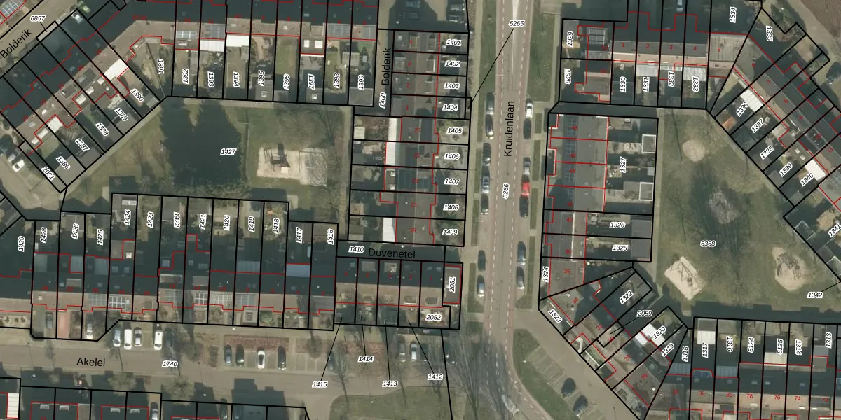 Het perceel waarop Kruidenlaan 21 staat heeft een oppervlakte van 165 m². Dit is een middelgroot perceel. De perceeloppervlakte wordt geregistreerd door het Kadaster. Gedetailleerde informatie over de maten van dit perceel kunt u vinden in het rapport Kadastrale kaart met maatvoering van Kruidenlaan 21.