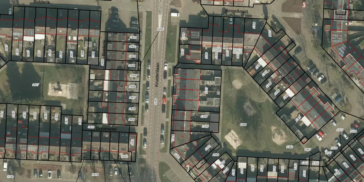 Het perceel waarop Kruidenlaan 44 staat heeft een oppervlakte van 596 m². Dit is een groot perceel. De perceeloppervlakte wordt geregistreerd door het Kadaster. Gedetailleerde informatie over de maten van dit perceel kunt u vinden in het rapport Kadastrale kaart met maatvoering van Kruidenlaan 44.