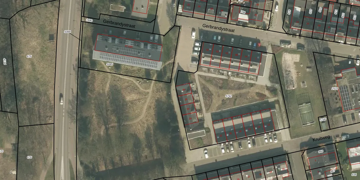 Kruitweg 30 is gelegen op kadastraal perceel VRY00L5742. Deze kadastrale aanduiding is uniek en wordt gebruikt door het Kadaster om eigendomsrechten en andere zakelijke rechten vast te leggen. Het perceel maakt onderdeel uit van de kadastrale gemeente Venray.