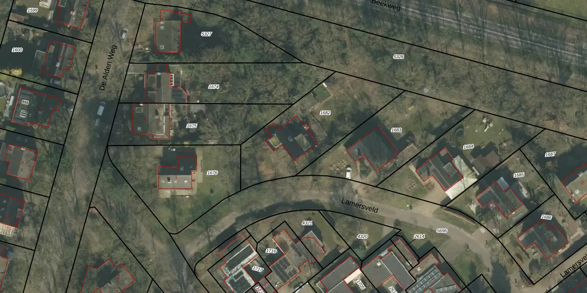 Het perceel waarop Lamersveld 1 staat heeft een oppervlakte van 1013 m². Dit is een zeer groot perceel. De perceeloppervlakte wordt geregistreerd door het Kadaster. Gedetailleerde informatie over de maten van dit perceel kunt u vinden in het rapport Kadastrale kaart met maatvoering van Lamersveld 1.