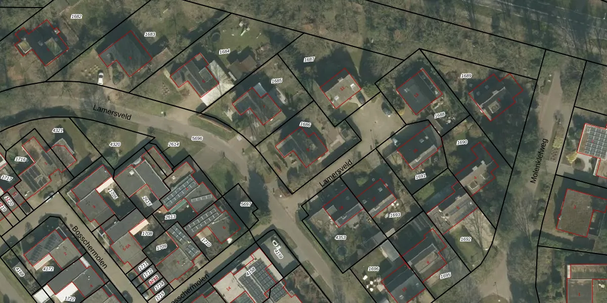 Het perceel waarop Lamersveld 9 staat heeft een oppervlakte van 535 m². Dit is een groot perceel. De perceeloppervlakte wordt geregistreerd door het Kadaster. Gedetailleerde informatie over de maten van dit perceel kunt u vinden in het rapport Kadastrale kaart met maatvoering van Lamersveld 9.