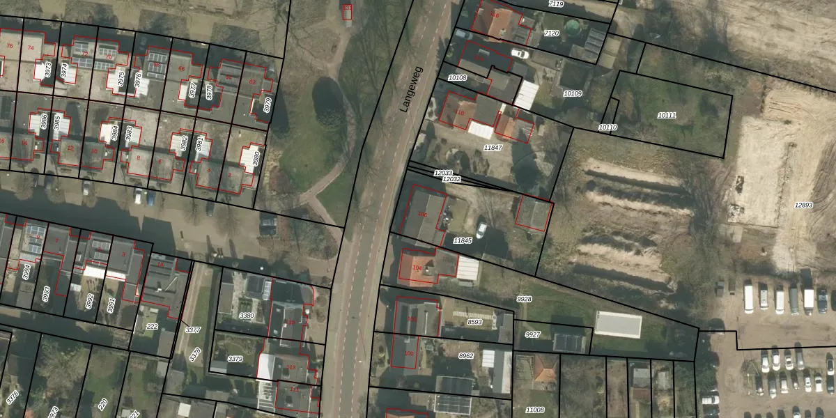 Het perceel waarop Langeweg 106 staat heeft een oppervlakte van 595 m². Dit is een groot perceel. De perceeloppervlakte wordt geregistreerd door het Kadaster. Gedetailleerde informatie over de maten van dit perceel kunt u vinden in het rapport Kadastrale kaart met maatvoering van Langeweg 106.