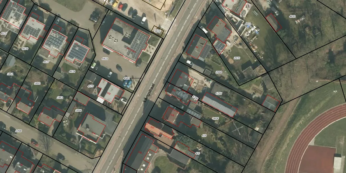 Het perceel waarop Langstraat 103 staat heeft een oppervlakte van 620 m². Dit is een groot perceel. De perceeloppervlakte wordt geregistreerd door het Kadaster. Gedetailleerde informatie over de maten van dit perceel kunt u vinden in het rapport Kadastrale kaart met maatvoering van Langstraat 103.