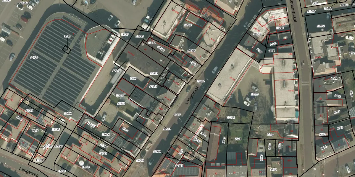 Het perceel waarop Langstraat 12 staat heeft een oppervlakte van 90 m². Dit is een klein perceel. De perceeloppervlakte wordt geregistreerd door het Kadaster. Gedetailleerde informatie over de maten van dit perceel kunt u vinden in het rapport Kadastrale kaart met maatvoering van Langstraat 12.