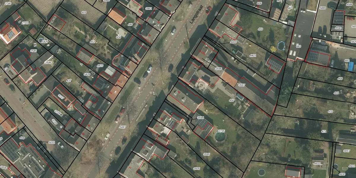 Langstraat 33 is gelegen op kadastraal perceel VRY00L2735. Deze kadastrale aanduiding is uniek en wordt gebruikt door het Kadaster om eigendomsrechten en andere zakelijke rechten vast te leggen. Het perceel maakt onderdeel uit van de kadastrale gemeente Venray.