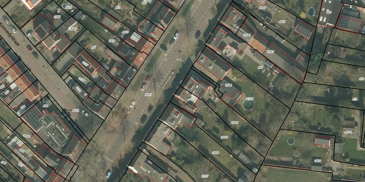 Gebruik de zoekbalk of klik op een perceel voor informatie over de adressen binnen dit perceel.