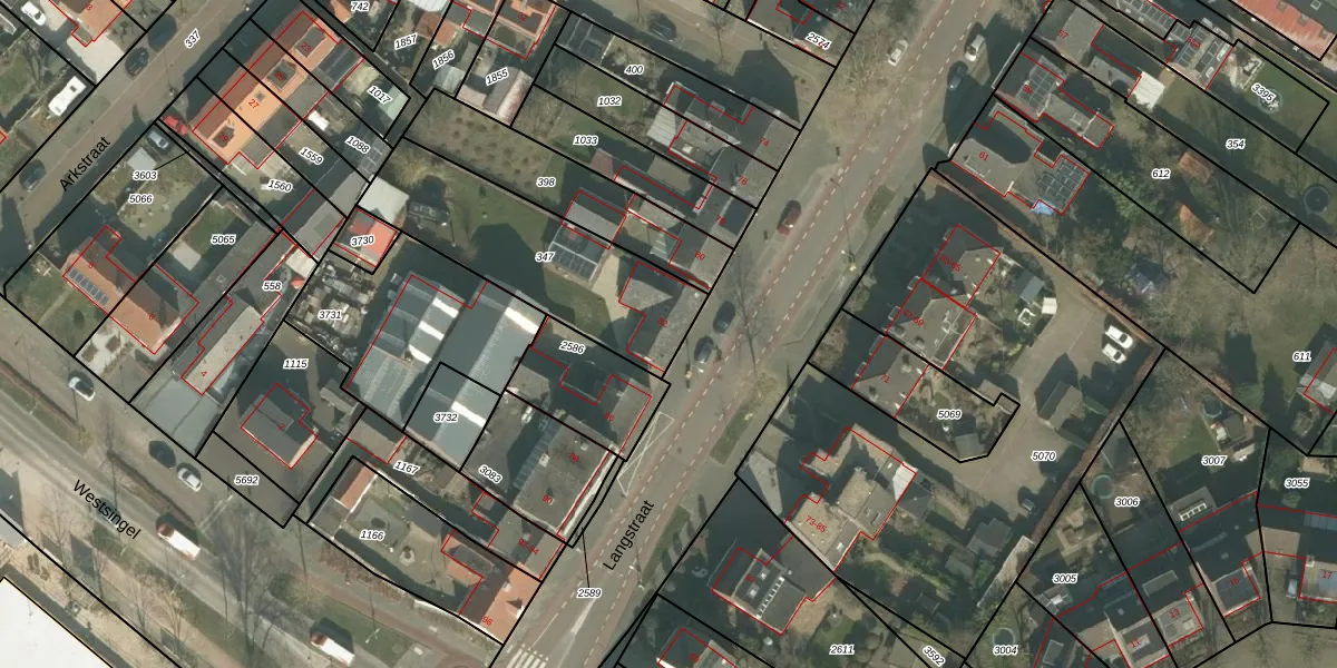 Gebruik de zoekbalk of klik op een perceel voor informatie over de adressen binnen dit perceel.