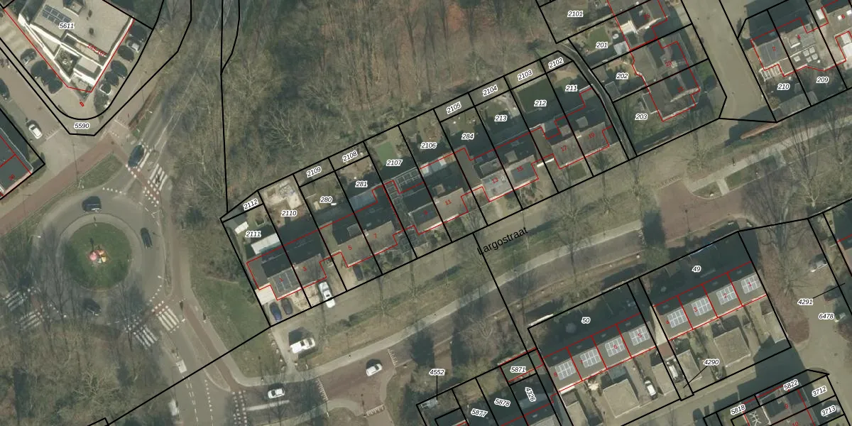 Gebruik de zoekbalk of klik op een perceel voor informatie over de adressen binnen dit perceel.
