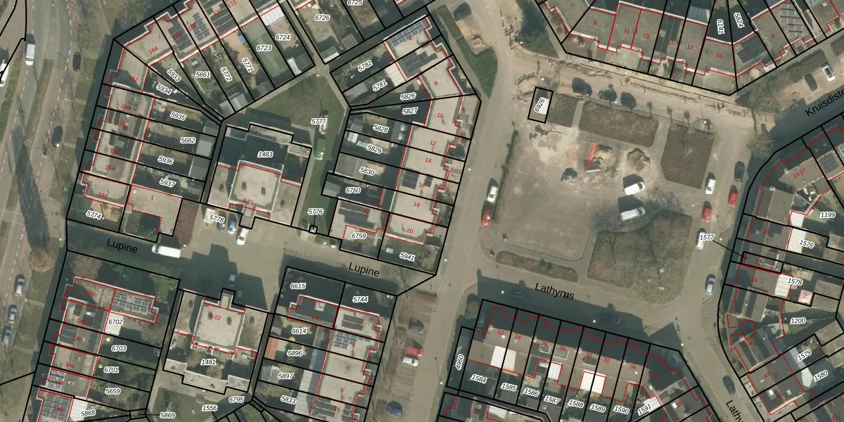 Het perceel waarop Lathyrus 18 staat heeft een oppervlakte van 165 m². Dit is een middelgroot perceel. De perceeloppervlakte wordt geregistreerd door het Kadaster. Gedetailleerde informatie over de maten van dit perceel kunt u vinden in het rapport Kadastrale kaart met maatvoering van Lathyrus 18.