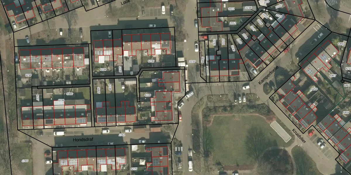 Het perceel waarop Look 1 staat heeft een oppervlakte van 1100 m². Dit is een zeer groot perceel. De perceeloppervlakte wordt geregistreerd door het Kadaster. Gedetailleerde informatie over de maten van dit perceel kunt u vinden in het rapport Kadastrale kaart met maatvoering van Look 1.