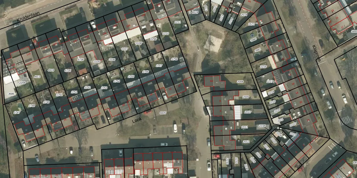 Gebruik de zoekbalk of klik op een perceel voor informatie over de adressen binnen dit perceel.