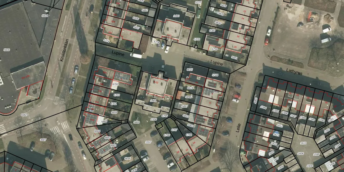 Het perceel waarop Lupine 10 staat heeft een oppervlakte van 430 m². Dit is een groot perceel. De perceeloppervlakte wordt geregistreerd door het Kadaster. Gedetailleerde informatie over de maten van dit perceel kunt u vinden in het rapport Kadastrale kaart met maatvoering van Lupine 10.