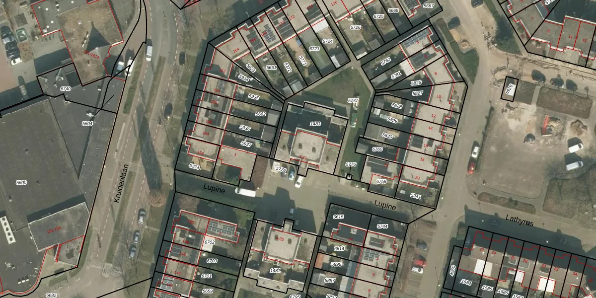 Het perceel waarop Lupine 13 staat heeft een oppervlakte van 430 m². Dit is een groot perceel. De perceeloppervlakte wordt geregistreerd door het Kadaster. Gedetailleerde informatie over de maten van dit perceel kunt u vinden in het rapport Kadastrale kaart met maatvoering van Lupine 13.