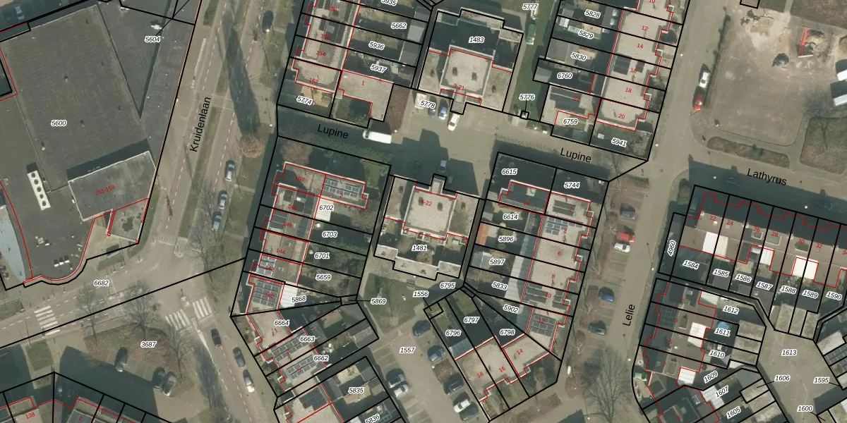 Het perceel waarop Lupine 14 staat heeft een oppervlakte van 430 m². Dit is een groot perceel. De perceeloppervlakte wordt geregistreerd door het Kadaster. Gedetailleerde informatie over de maten van dit perceel kunt u vinden in het rapport Kadastrale kaart met maatvoering van Lupine 14.