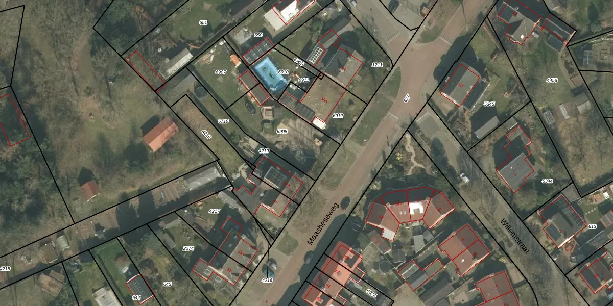 Maasheseweg 59 is gelegen op kadastraal perceel VRY00T6908. Deze kadastrale aanduiding is uniek en wordt gebruikt door het Kadaster om eigendomsrechten en andere zakelijke rechten vast te leggen. Het perceel maakt onderdeel uit van de kadastrale gemeente Venray.