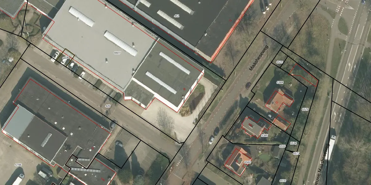 Maasheseweg 75 is gelegen op kadastraal perceel VRY00T6607. Deze kadastrale aanduiding is uniek en wordt gebruikt door het Kadaster om eigendomsrechten en andere zakelijke rechten vast te leggen. Het perceel maakt onderdeel uit van de kadastrale gemeente Venray.