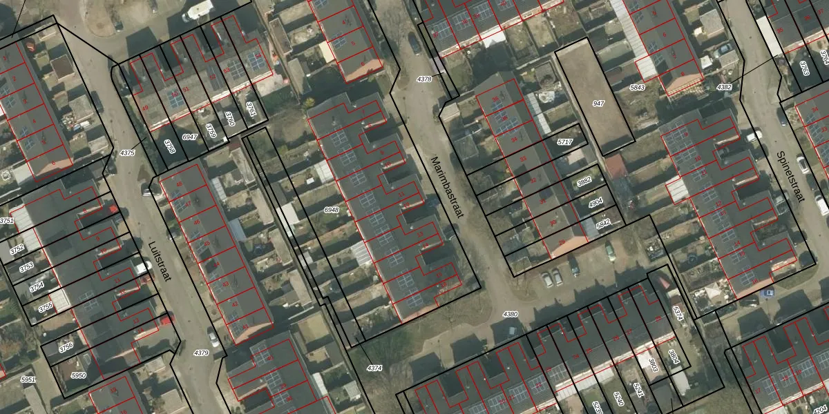 Het perceel waarop Marimbastraat 12 staat heeft een oppervlakte van 5182 m². Dit is een zeer groot perceel. De perceeloppervlakte wordt geregistreerd door het Kadaster. Gedetailleerde informatie over de maten van dit perceel kunt u vinden in het rapport Kadastrale kaart met maatvoering van Marimbastraat 12.