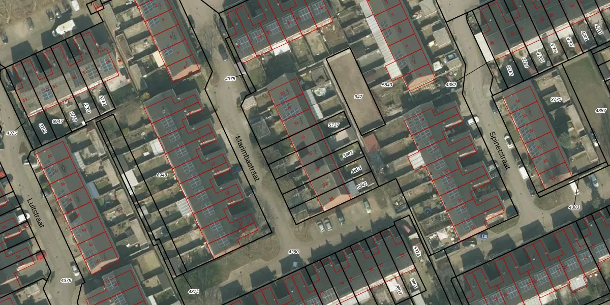 Het perceel waarop Marimbastraat 32 staat heeft een oppervlakte van 4848 m². Dit is een zeer groot perceel. De perceeloppervlakte wordt geregistreerd door het Kadaster. Gedetailleerde informatie over de maten van dit perceel kunt u vinden in het rapport Kadastrale kaart met maatvoering van Marimbastraat 32.