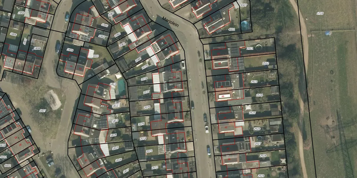 Het perceel waarop Marjolein 43 staat heeft een oppervlakte van 288 m². Dit is een middelgroot perceel. De perceeloppervlakte wordt geregistreerd door het Kadaster. Gedetailleerde informatie over de maten van dit perceel kunt u vinden in het rapport Kadastrale kaart met maatvoering van Marjolein 43.
