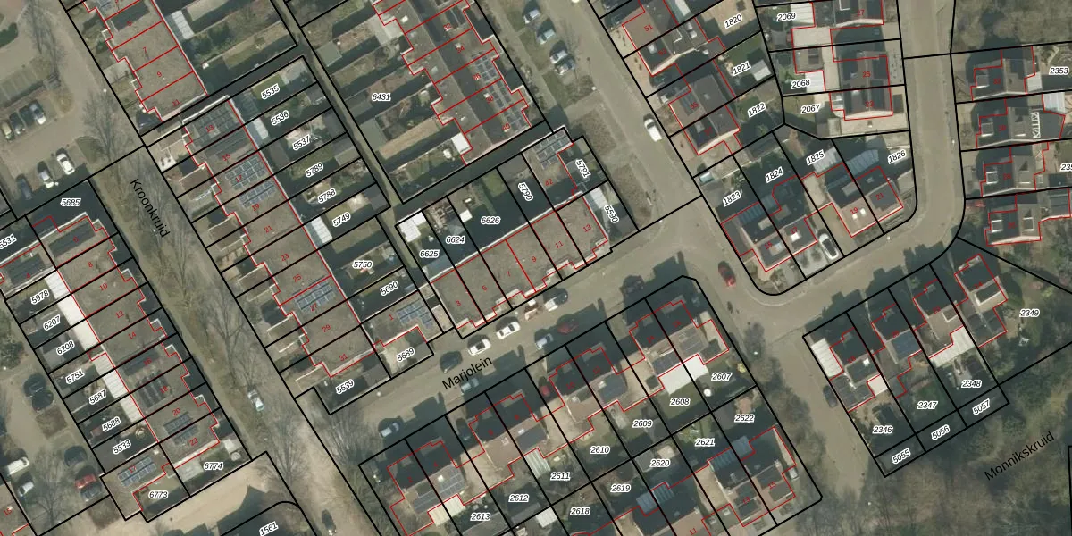 Het perceel waarop Marjolein 9 staat heeft een oppervlakte van 264 m². Dit is een middelgroot perceel. De perceeloppervlakte wordt geregistreerd door het Kadaster. Gedetailleerde informatie over de maten van dit perceel kunt u vinden in het rapport Kadastrale kaart met maatvoering van Marjolein 9.