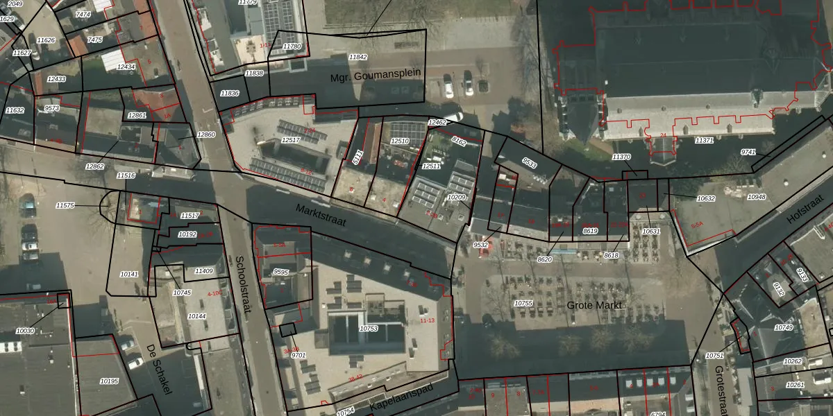Het perceel waarop Marktstraat 2 staat heeft een oppervlakte van 344 m². Dit is een groot perceel. De perceeloppervlakte wordt geregistreerd door het Kadaster. Gedetailleerde informatie over de maten van dit perceel kunt u vinden in het rapport Kadastrale kaart met maatvoering van Marktstraat 2.