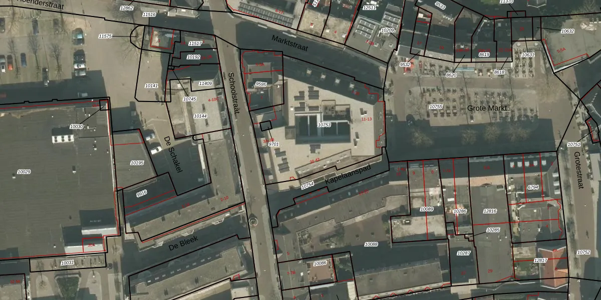 Het perceel waarop Marktstraat 31 staat heeft een oppervlakte van 1320 m². Dit is een zeer groot perceel. De perceeloppervlakte wordt geregistreerd door het Kadaster. Gedetailleerde informatie over de maten van dit perceel kunt u vinden in het rapport Kadastrale kaart met maatvoering van Marktstraat 31.