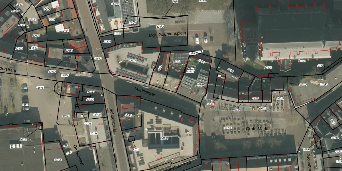 Het perceel waarop Marktstraat 4 staat heeft een oppervlakte van 248 m². Dit is een middelgroot perceel. De perceeloppervlakte wordt geregistreerd door het Kadaster. Gedetailleerde informatie over de maten van dit perceel kunt u vinden in het rapport Kadastrale kaart met maatvoering van Marktstraat 4.