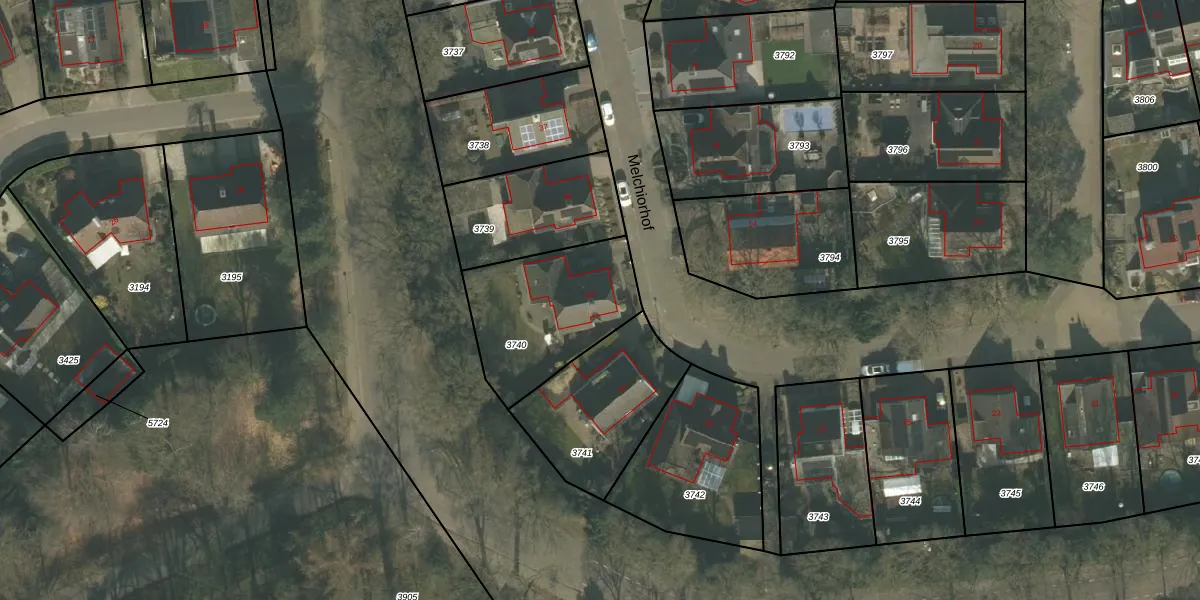 Het perceel waarop Melchiorhof 33 staat heeft een oppervlakte van 525 m². Dit is een groot perceel. De perceeloppervlakte wordt geregistreerd door het Kadaster. Gedetailleerde informatie over de maten van dit perceel kunt u vinden in het rapport Kadastrale kaart met maatvoering van Melchiorhof 33.