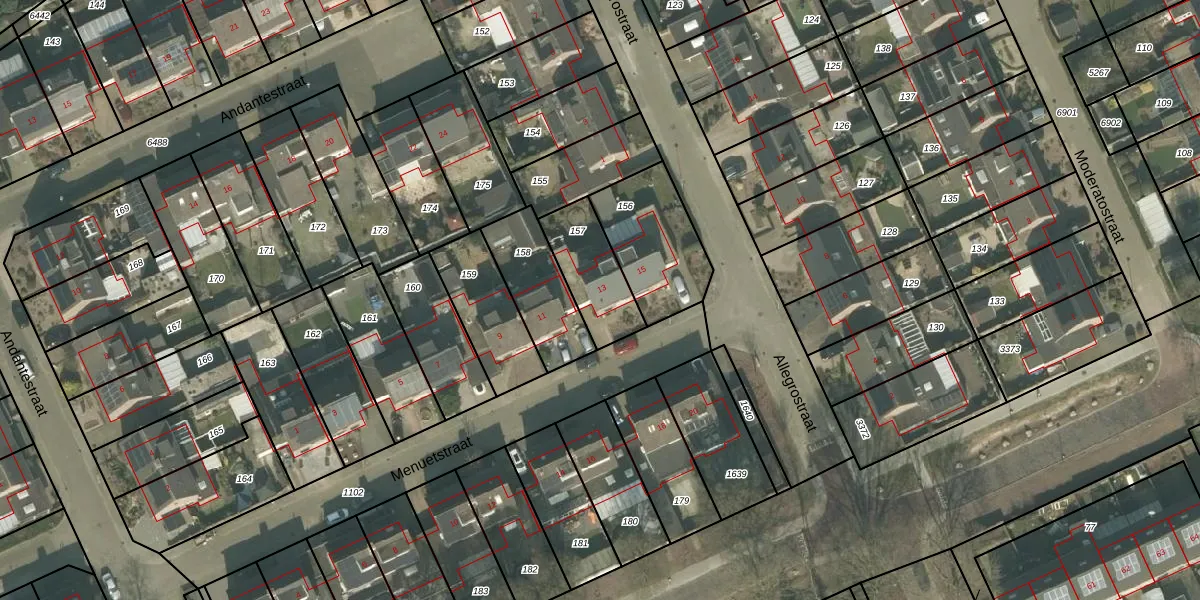 Het perceel waarop Menuetstraat 13 staat heeft een oppervlakte van 225 m². Dit is een middelgroot perceel. De perceeloppervlakte wordt geregistreerd door het Kadaster. Gedetailleerde informatie over de maten van dit perceel kunt u vinden in het rapport Kadastrale kaart met maatvoering van Menuetstraat 13.