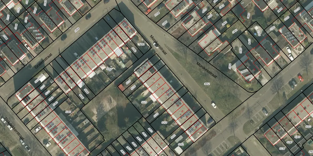 Het perceel waarop Monikesstraat 6 staat heeft een oppervlakte van 588 m². Dit is een groot perceel. De perceeloppervlakte wordt geregistreerd door het Kadaster. Gedetailleerde informatie over de maten van dit perceel kunt u vinden in het rapport Kadastrale kaart met maatvoering van Monikesstraat 6.