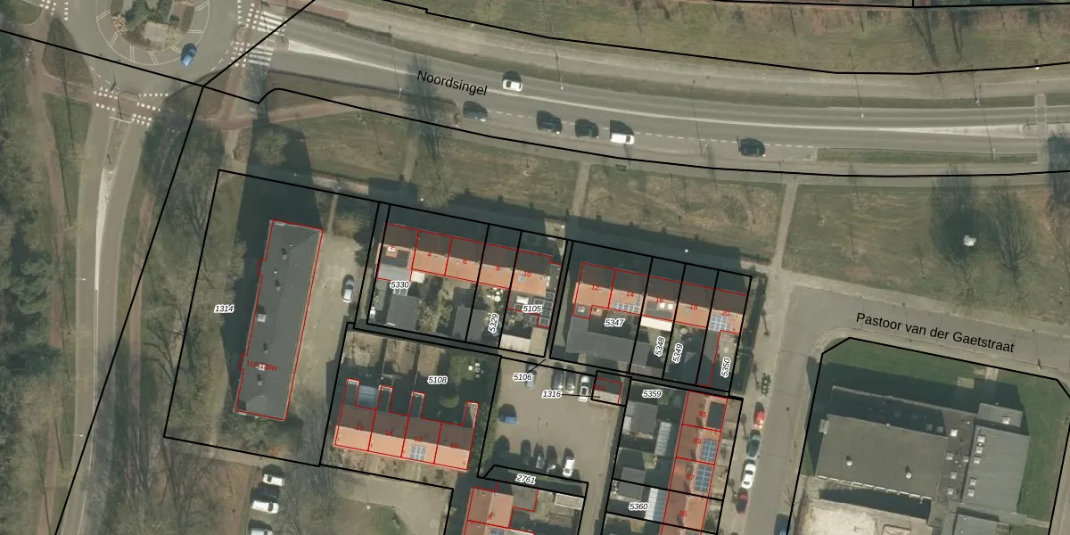 Noordsingel 10 is gelegen op kadastraal perceel VRY00L5105. Deze kadastrale aanduiding is uniek en wordt gebruikt door het Kadaster om eigendomsrechten en andere zakelijke rechten vast te leggen. Het perceel maakt onderdeel uit van de kadastrale gemeente Venray.