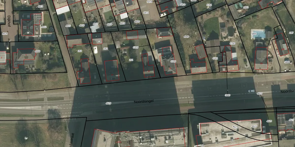 Het perceel waarop Noordsingel 13 staat heeft een oppervlakte van 800 m². Dit is een groot perceel. De perceeloppervlakte wordt geregistreerd door het Kadaster. Gedetailleerde informatie over de maten van dit perceel kunt u vinden in het rapport Kadastrale kaart met maatvoering van Noordsingel 13.