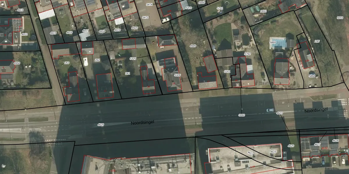 Het perceel waarop Noordsingel 15 staat heeft een oppervlakte van 598 m². Dit is een groot perceel. De perceeloppervlakte wordt geregistreerd door het Kadaster. Gedetailleerde informatie over de maten van dit perceel kunt u vinden in het rapport Kadastrale kaart met maatvoering van Noordsingel 15.