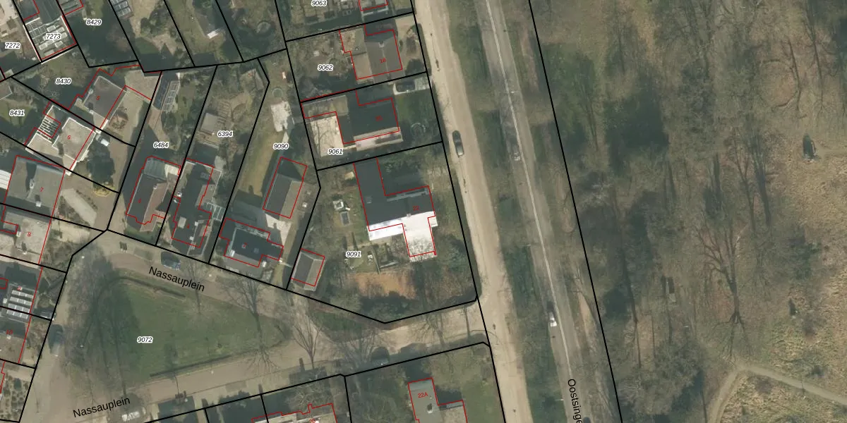 Het perceel waarop Oostsingel 22 staat heeft een oppervlakte van 1360 m². Dit is een zeer groot perceel. De perceeloppervlakte wordt geregistreerd door het Kadaster. Gedetailleerde informatie over de maten van dit perceel kunt u vinden in het rapport Kadastrale kaart met maatvoering van Oostsingel 22.