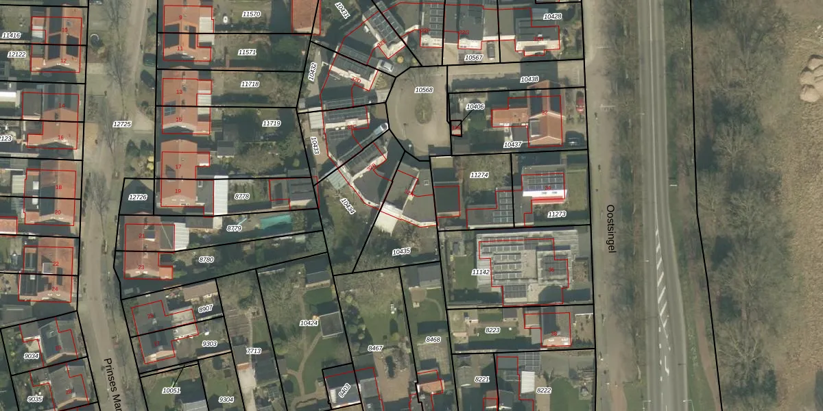 Het perceel waarop Oostsingel 32-A staat heeft een oppervlakte van 373 m². Dit is een groot perceel. De perceeloppervlakte wordt geregistreerd door het Kadaster. Gedetailleerde informatie over de maten van dit perceel kunt u vinden in het rapport Kadastrale kaart met maatvoering van Oostsingel 32-A.